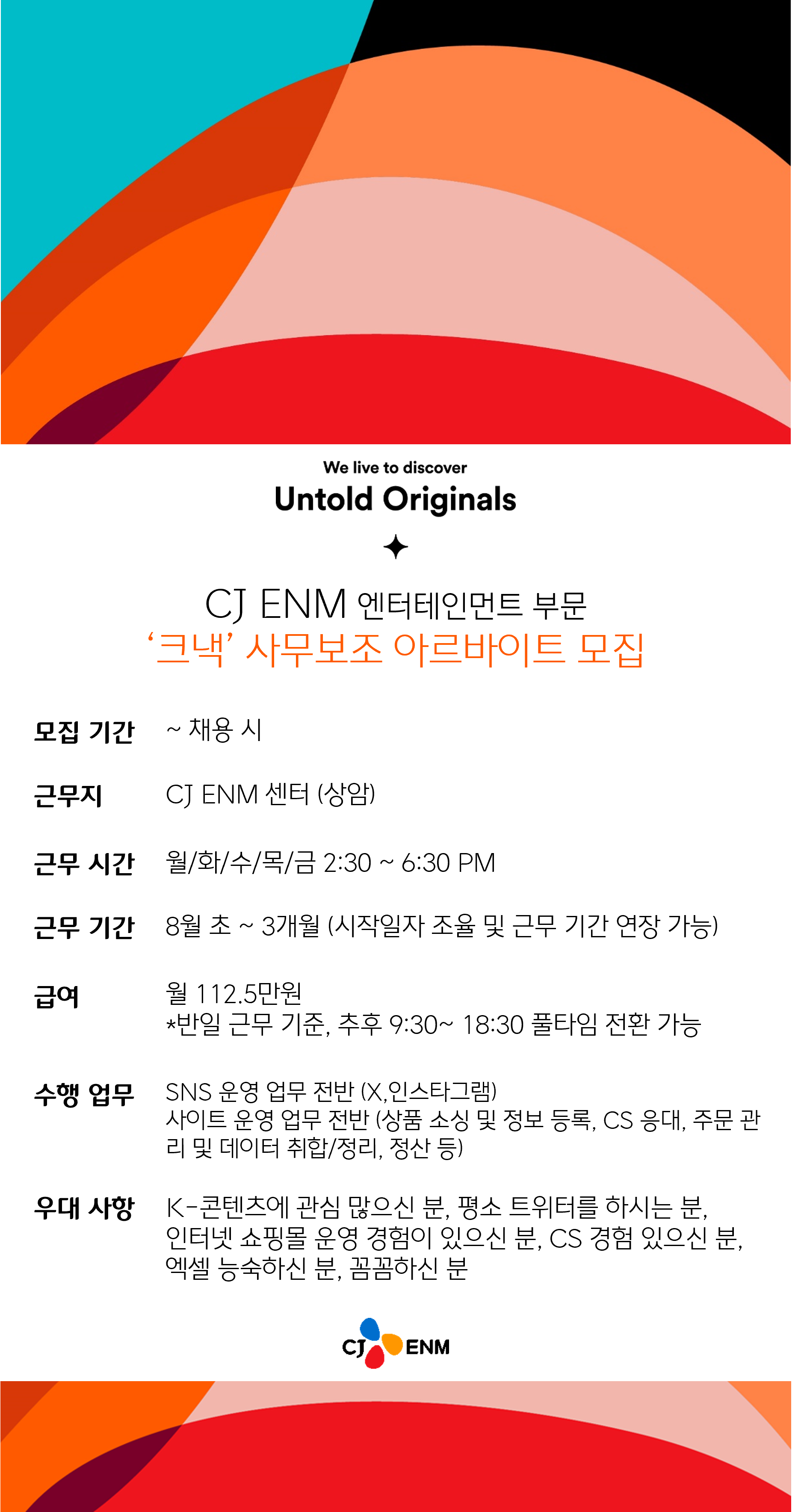 CJ ENM 엔터 부문 "크낵"(https://www.cnack.kr) 아르바